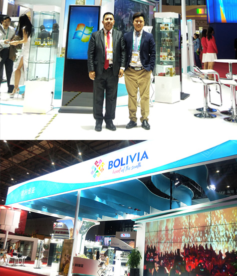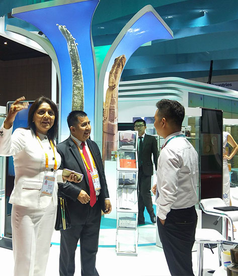 圖為我司領(lǐng)導(dǎo)與玻利維亞駐華全權(quán)大使 Heriberto Quispe Charca錢唯忠先生交談回訪,認真聽取反饋意見,錢唯忠先生高度贊揚了我司的展臺設(shè)計水平和服務(wù)能力.